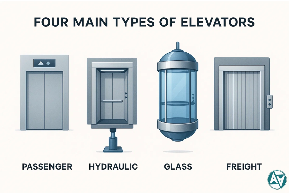 آسانسورها بر اساس نوع مکانیزم و کاربرد به چند دسته تقسیم میشوند: